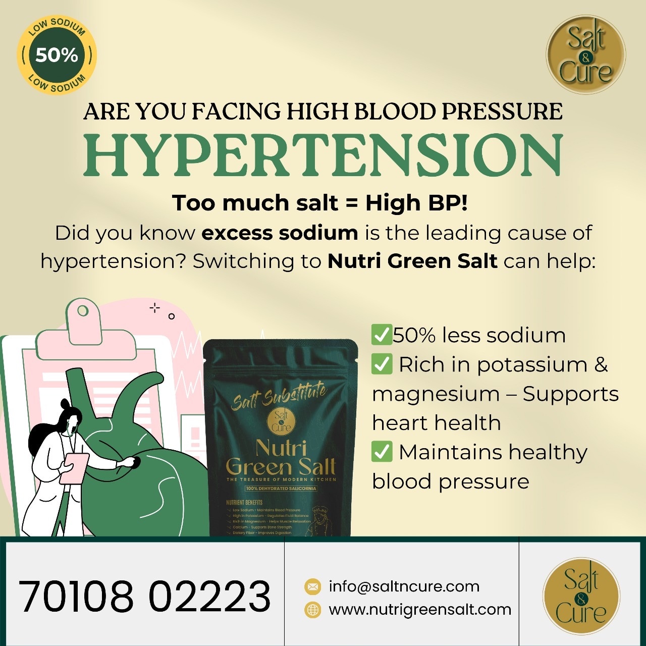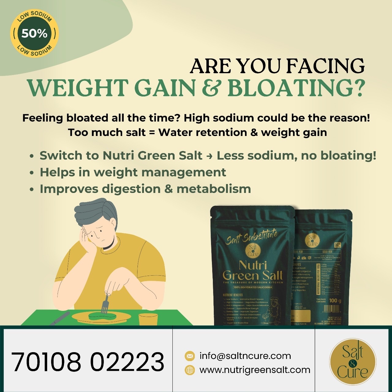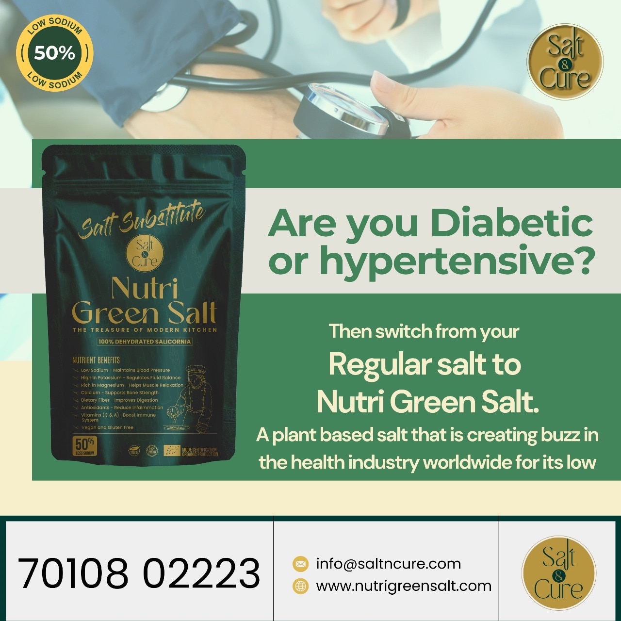Welcome to the Future of Healthy Seasoning – Nutri Green Salt At Nutri Green Salt, we bring you a revolutionary alternative to traditional table salt—a natural, plant-based seasoning made from the Organic Salicornia plant, a globally recognised superfood. Packed with essential nutrients, lower sodium content, and unique umami flavour, Nutri Green Salt is designed to enhance your meals while supporting your health and wellness. Why Choose Nutri Green Salt? Nutri Green Salt offers more than just flavour. It’s your gateway to a healthier lifestyle. With 50% to 60 % less sodium than regular salt, this all-natural product is rich in Vitamins (E, B3), minerals like Potassium, Magnesium, Iron, and Calcium, and is a great source of fiber and chlorophyll. Free from gluten, GMOs, and microplastics, it’s a safe and eco-friendly choice for every kitchen. What Makes Nutri Green Salt Unique? Derived from Salicornia, a coastal superfood also known as Glasswort or Marsh Samphire, Nutri Green Salt is cultivated organically to retain its nutritional value. This plant-based salt provides a perfect balance of health benefits and delicious flavour, making it an ideal seasoning for every meal. Key Benefits: • Lower Sodium: Helps reduce sodium intake without compromising taste. • Nutrient-Rich: Boosts your meals with essential vitamins and minerals. • Versatile: Ideal for all cuisines, from traditional dishes to gourmet recipes. • Eco-Friendly: Grown sustainably under natural coastal conditions. Transform Your Meals Nutri Green Salt is more than just seasoning; it’s a lifestyle upgrade. Whether you’re looking to enhance flavours or make healthier dietary choices, Nutri Green Salt is the perfect partner for your kitchen. Experience the difference today—Nutri Green Salt is your step toward flavourful, healthy living. WhatsApp BOT : +91 98405 01554 Call / Whatsapp : + 91 70108 02223 E mail :info@saltncure.com Visit us at : www.nutrigreensalt.com
